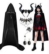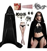 Voller Accessoires: Im Lieferumfang enthalten sind: - Schwarzer Umhang mit Kapuze - Elegante Spitzenmaske - Gothic Halskette - Retro Fingerringkette - Vintage Ohrringe - Netzstrümpfe - Set roter Maniküre