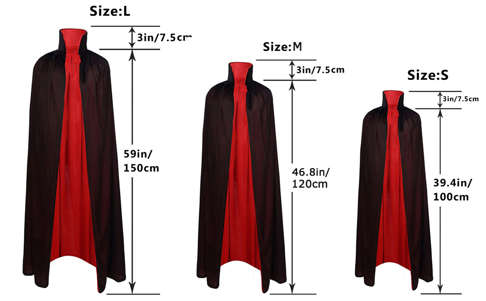 Halloween Umhang Schwarz Rot, Reversible Cloak für Damen und Männer, Doppelseitig Halloween-Kostüm
